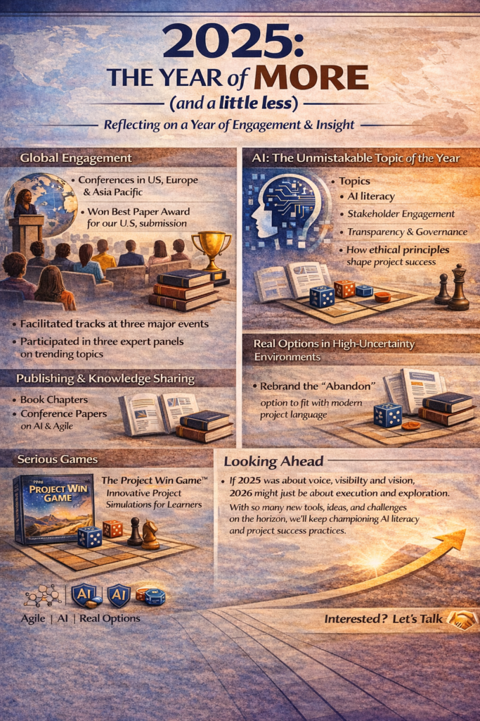 Serious games like The Project Win Game™ continue to gain momentum as innovative tools for learning and engagement in project management. By immersing participants in high-stakes, scenario-based challenges, the game allows them to experience the consequences of complex project decisions in real time. While universities have been the early adopters, we believe their value extends far beyond academia. In our presentation at PMI Madrid, we demonstrated how serious games can help practitioners navigate agile dilemmas and bring fresh energy to learning and reflection in project environments.